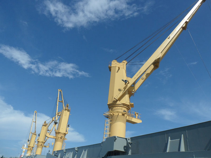 福建寧德船用起重機生產公司船用吊機一般是船舶自備自帶的用來裝卸貨物的這種裝置和機械。船吊主要有吊桿裝置,甲板起重機以及其他一些輔助型的裝載機械為主。因為船的特殊性,所以說他的吊機一般都是在10噸以下的吊裝能力。這種船用吊機和其他汽車吊車一樣,都有吊臂,齒輪轉盤,減速機,卷揚機等這幾大部件組成。一般都是由吊機自帶的馬達和卷揚機給提供動力,帶動轉盤360度旋轉或吊機大臂里面的鋼絲繩伸縮,從而起到一個起吊貨物的功能。一般我們常見的小型船用吊機,主要是用于內河,湖泊或近海上的船只一般的起吊裝卸貨物來用的。主要包括吊臂和鋼絲繩,卷揚機等,近后來更有些近海漁業養殖或是湖泊里養殖也經常使用船吊---由此可見小型船吊不僅是港口船舶裝修貨物的主要裝卸工具,在船只的其他使用領域如水下救撈和各種海洋魚業作業當中都有廣泛的使用,應用范圍也是越來越廣了。